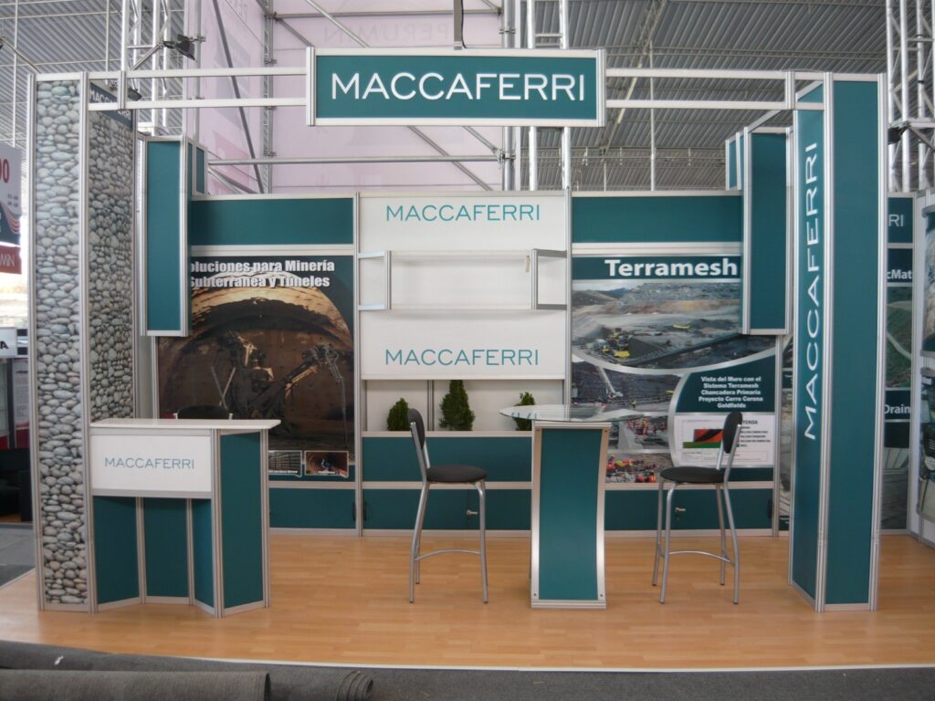 Diseño e implementación de stands modulares o básicos en perfiles de aluminio y madera (MDF).